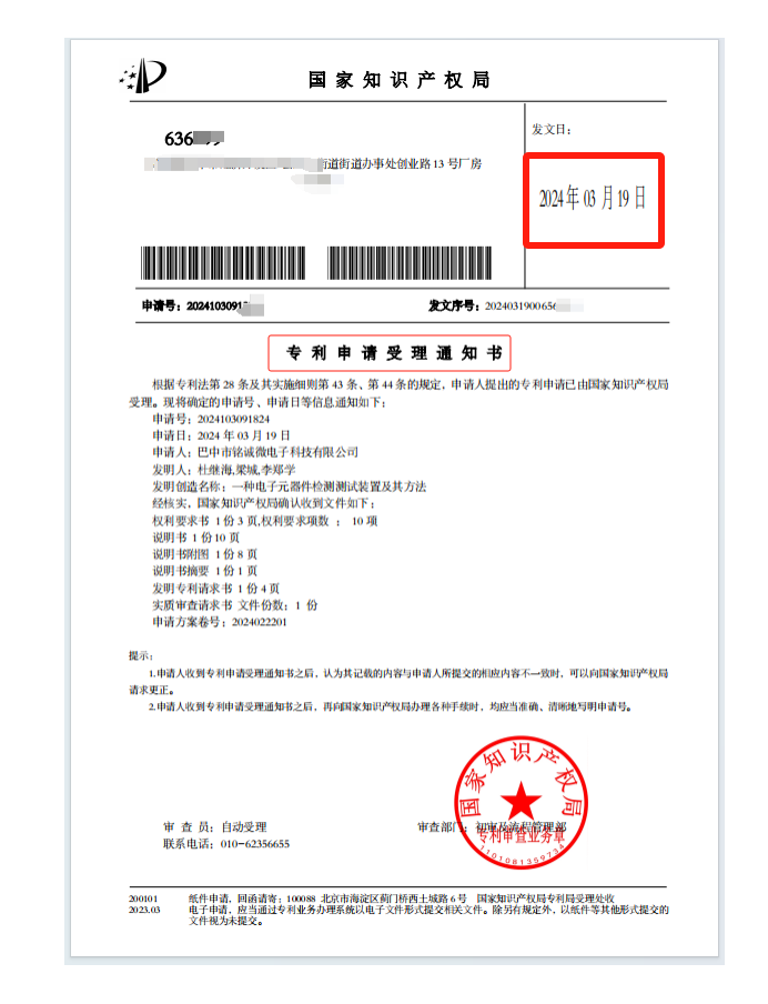 今天,我们要向大家热烈祝贺我司客户,获得发明专利授权通知书!这是专利局对公司客户在技术创新和研发实力上的高度认可,同时也是对他们不断追求卓越、积极拓展新领域的一次极大鼓舞。